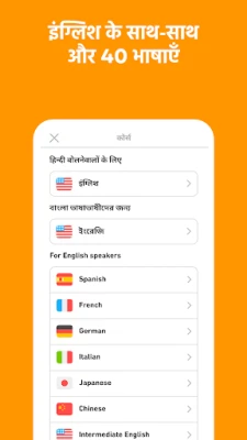 डुओलिंगो के साथ मुफ़्त में नई भाषाएँ सीखें! 40 से ज़्यादा भाषाओं के लिए मज़ेदार और छोटे पाठों का आनंद लें। पढ़ने, लिखने, बोलने और सुनने का अभ्यास करके अपनी शब्दावली और व्याकरण को मज़बूत बनाएँ। यह दुनिया का सबसे लोकप्रिय भाषा सीखने वाला ऐप है।