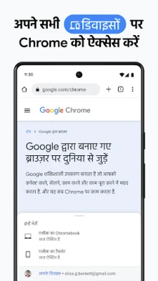 आपकी डिजिटल ज़िंदगी को आसान बनाने के लिए Chrome आपके सभी डिवाइसों पर एक साथ काम करता है। अपने फ़ोन, कंप्यूटर या टैबलेट पर Chrome में साइन इन करें और अपने बुकमार्क, खुले हुए टैब और सहेजे गए पासवर्ड को कहीं भी, कभी भी तुरंत एक्सेस करें। टैब ग्रुप की मदद से अपने काम को व्यवस्थित करें और अलग-अलग परियोजनाओं या विषयों के लिए अपने टैब को कुशलता से प्रबंधित करें। स्वचालित भरने की सुविधा से समय बचाएं, जो आपके सहेजे गए पतों, भुगतान विवरणों और पासवर्ड को तुरंत भर देती है, ताकि आपको बार-बार टाइप न करना पड़े और आप अपने महत्वपूर्ण कार्यों पर ध्यान केंद्रित कर सकें।
