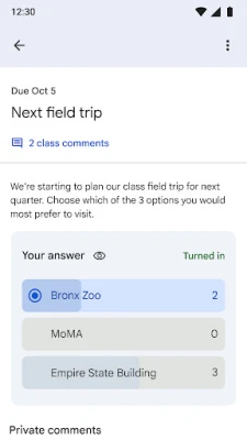 संगठन के नए स्तर का अनुभव करें। छात्र अपने सभी आगामी और पूर्ण किए गए असाइनमेंट को एक समर्पित, स्पष्ट रूप से डिज़ाइन किए गए पेज पर देख सकते हैं। इसके अलावा, क्लास में उपयोग की जाने वाली सभी महत्वपूर्ण सामग्री—जैसे दस्तावेज़, तस्वीरें, और वीडियो—स्वचालित रूप से Google Drive में एक व्यवस्थित फ़ोल्डर में सहेजी जाती है, जिससे कभी कुछ खोता नहीं है। Classroom प्रभावी संचार को बढ़ावा देता है। शिक्षक तुरंत घोषणाएं भेज सकते हैं और क्लास चर्चाएं शुरू कर सकते हैं, जिससे छात्रों को संलग्न रहने का अवसर मिलता है। छात्र भी आसानी से संसाधनों का आदान-प्रदान कर सकते हैं और सहपाठियों के प्रश्नों का उत्तर दे सकते हैं, जिससे सीखने का एक जीवंत और सहयोगी माहौल बनता है।