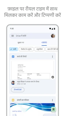 Google Drive, Google Workspace का अभिन्न हिस्सा है। इसमें आप कहीं से भी और किसी भी डिवाइस से अपनी फ़ाइलों व फ़ोल्डरों को सुरक्षित रूप से सेव कर सकते हैं, उन्हें व्यवस्थित रख सकते हैं और उन पर आसानी से साथ मिलकर काम कर सकते हैं।