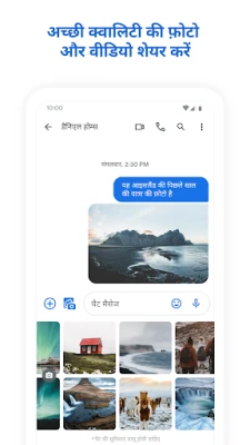 Google Messages, मैसेज भेजने का आधिकारिक Google ऐप्लिकेशन है. यह RCS तकनीक का उपयोग करके हाई-रिज़ॉल्यूशन फ़ोटो, वीडियो और डाइनैमिक ग्रुप चैट को संभव बनाता है. अब SMS/MMS की जगह, अपने दोस्तों और iPhone उपयोगकर्ताओं सहित किसी भी RCS उपयोगकर्ता से आसानी से जुड़ें.